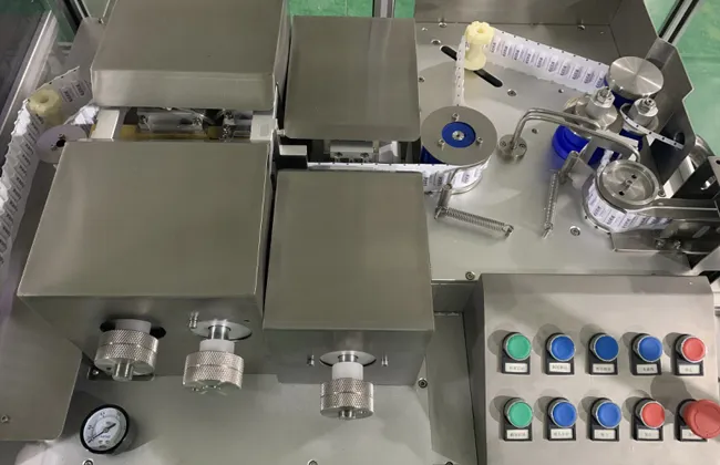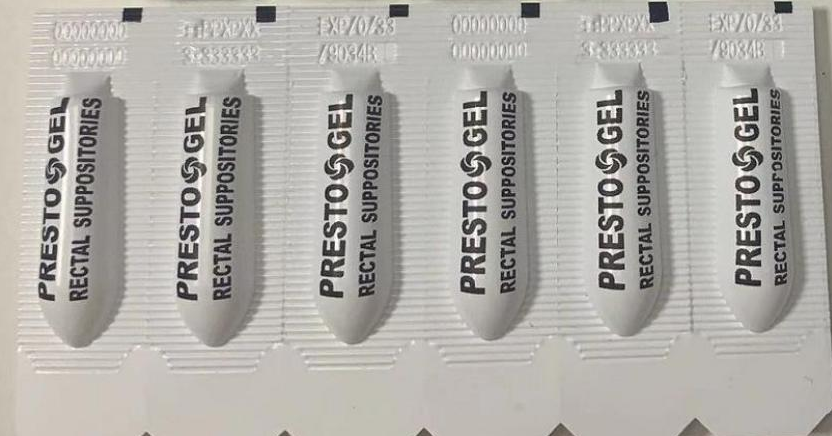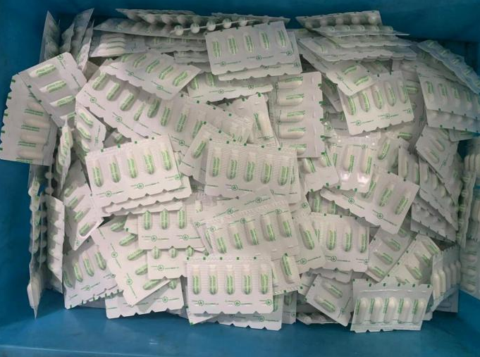 After being cooled, the solid suppository enters the sealing zone: preheating mold (preheating), sealing mould (seal), marking mould (batch number), The triangle knife will be cutting suppository top edge (cutting edge) ,hob (top), counting shear.